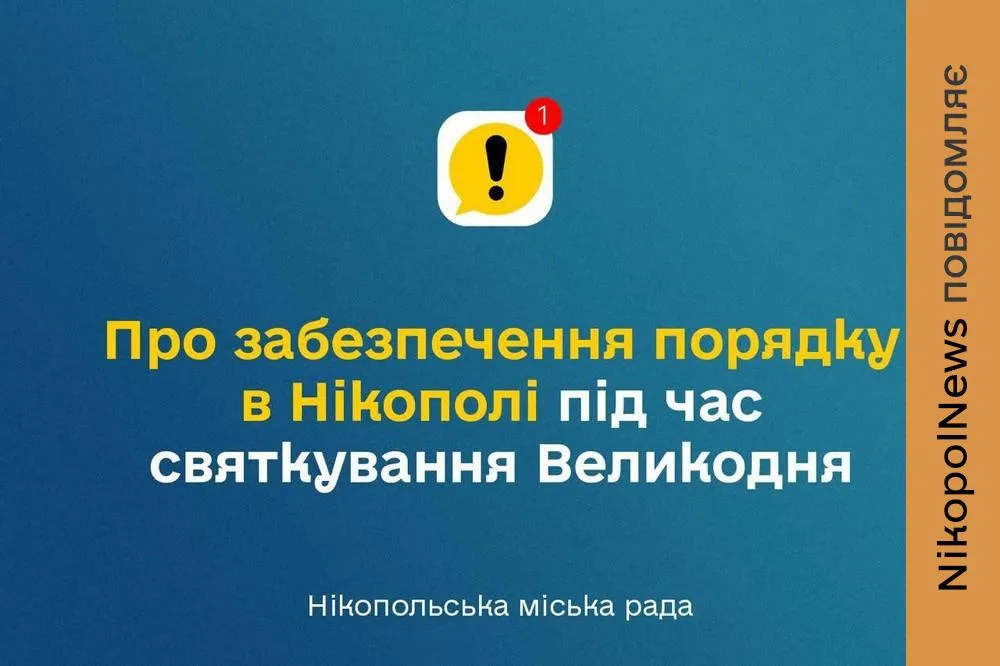 Відповідно до Закону України «Про правовий режим воєнного стану», розпоряджень Нікопольської районної військової адміністрації №23 від 01.04.2026 року «Про забезпечення порядку в районі під час святкування Великодня» та №24 від 08.04.2026 року «Про додаткові заходи безпеки», а також з урахуванням підвищеного рівня небезпеки в місті: