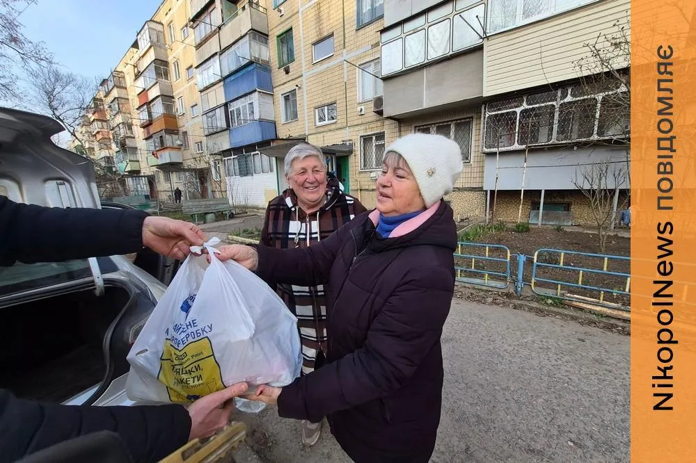 Мешканці Нікополя отримали продуктові набори від благодійників. Ця допомога стала важливою підтримкою для мешканців міста, які потрапили у складну ситуацію через прифронтове положення.