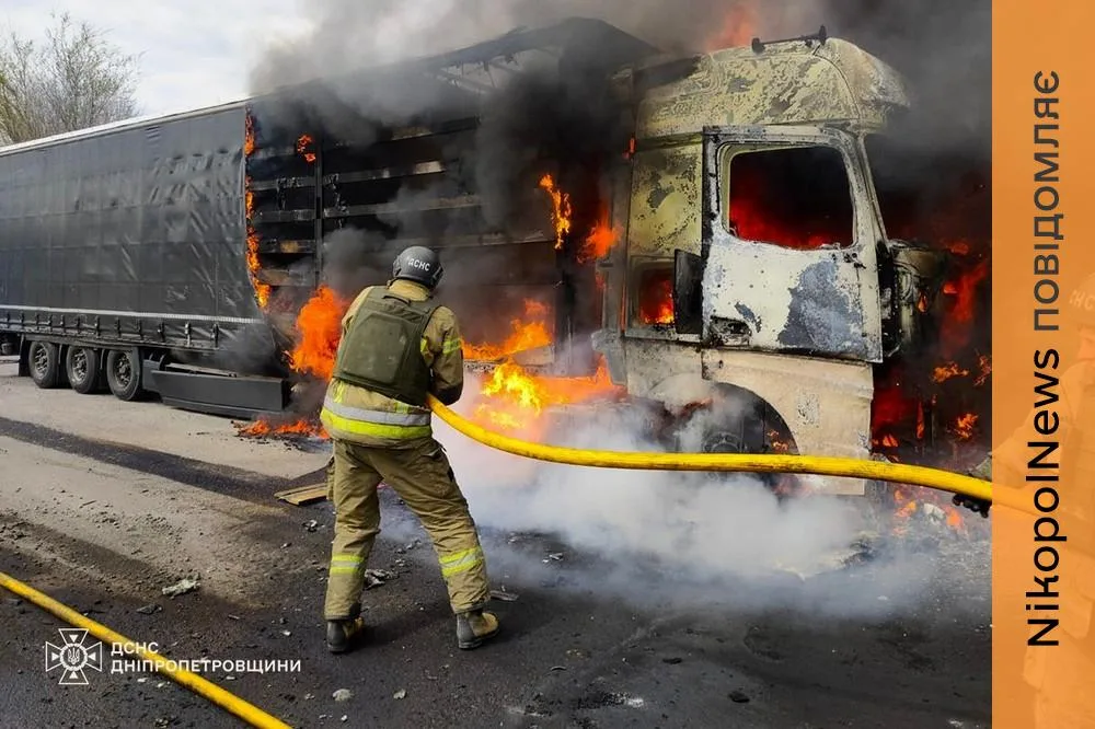 Окупанти цілили по інфраструктурі, автомобілях та житлових будинках мирних мешканців. У Нікополі внаслідок влучання FPV-дрона загинув 67-річний чоловік, який перебував за кермом вантажівки. Виникла пожежа. Її приборкали вогнеборці.